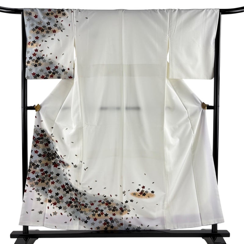 【着物ランク】優品 【素材】化繊 【身丈】約157cm 【裄丈】約65.5cm 【袖丈】約49cm 【袖幅】約33cm 【前幅】約25.5cm 【後幅】約31.5cm 【サイズ】M 【着物仕立て】袷 【着用時期】10~5月 【状態ランク】ランクB 【着物着用シーン】披露宴、パーティー、お見合い、式典、茶会