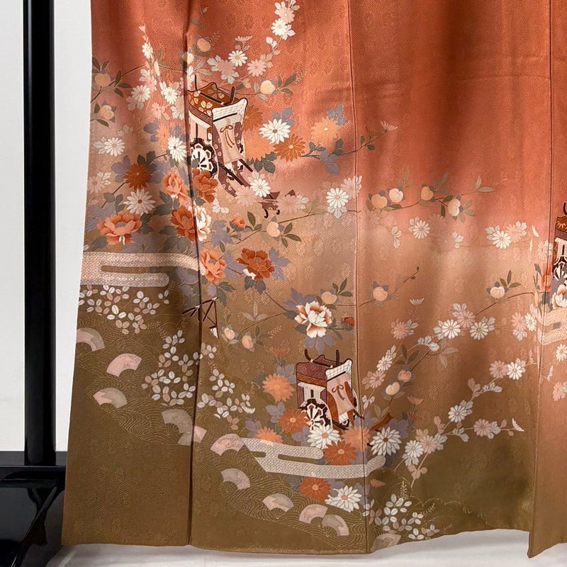 【着物ランク】優品 【素材】正絹 【身丈】約166cm 【裄丈】約68cm 【袖丈】約56cm 【袖幅】約34.5cm 【前幅】約23.5cm 【後幅】約30cm 【サイズ】L 【着物仕立て】袷 【着用時期】10~5月 【状態ランク】ランクA 【着物着用シーン】披露宴、パーティー、お見合い、式典、茶会