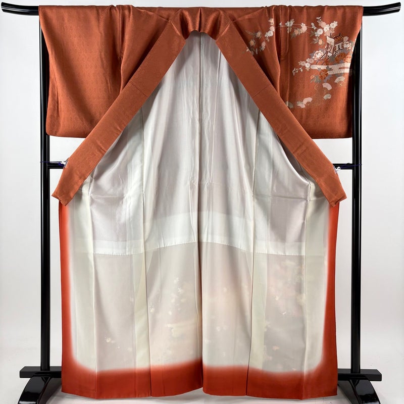 【訪問着】 赤系 赤茶 優品 A 約160cm~約169cm 裄丈67cm-68cm (L)size 袖丈50cm-60cm 4000-7980 美品 二万以下