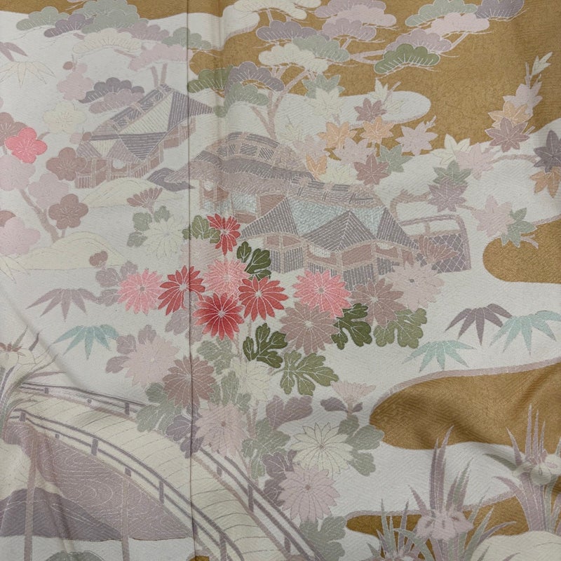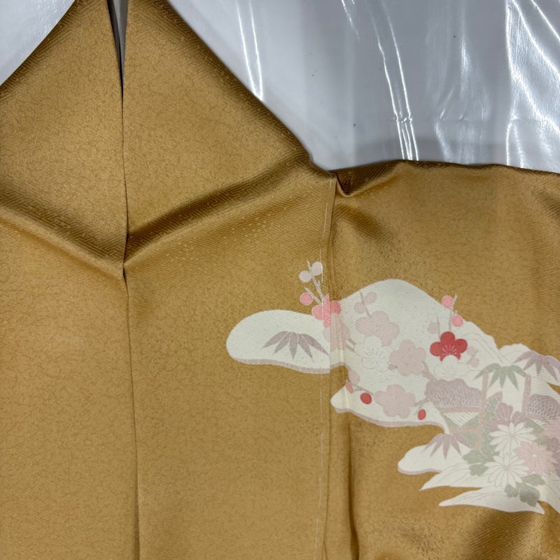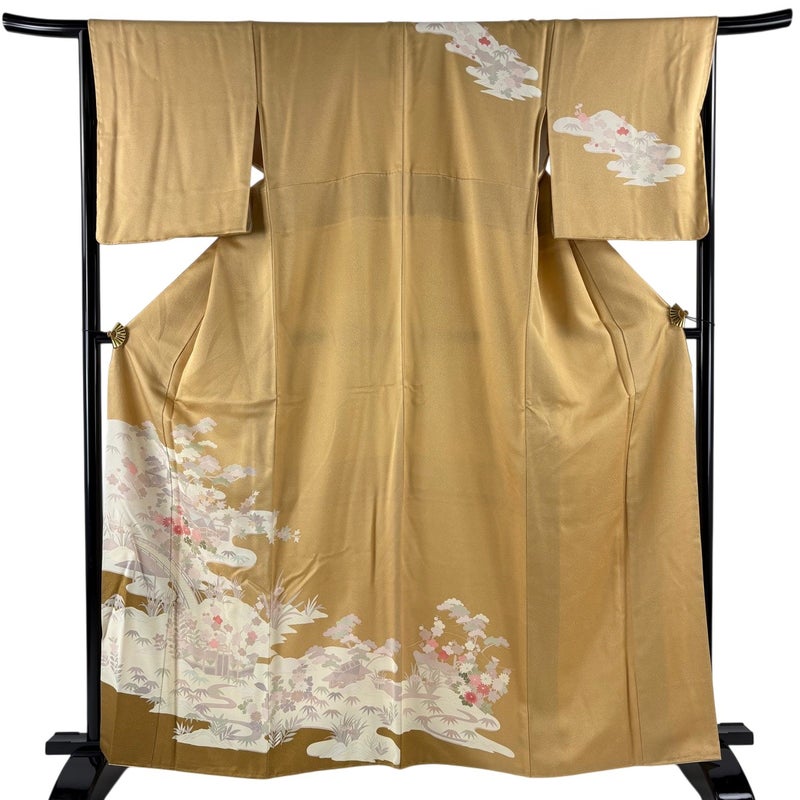 【訪問着】 黄色系 薄黄土色 優品 B 約160cm~約169cm 裄丈66cm (M)size 袖丈49cm 4000-7980 二万以下