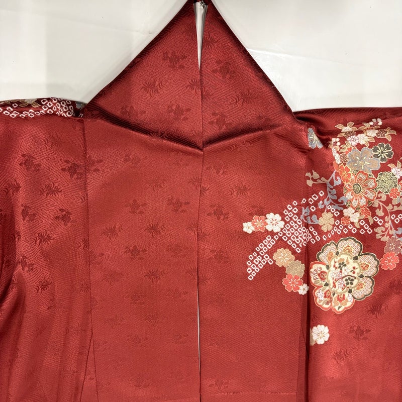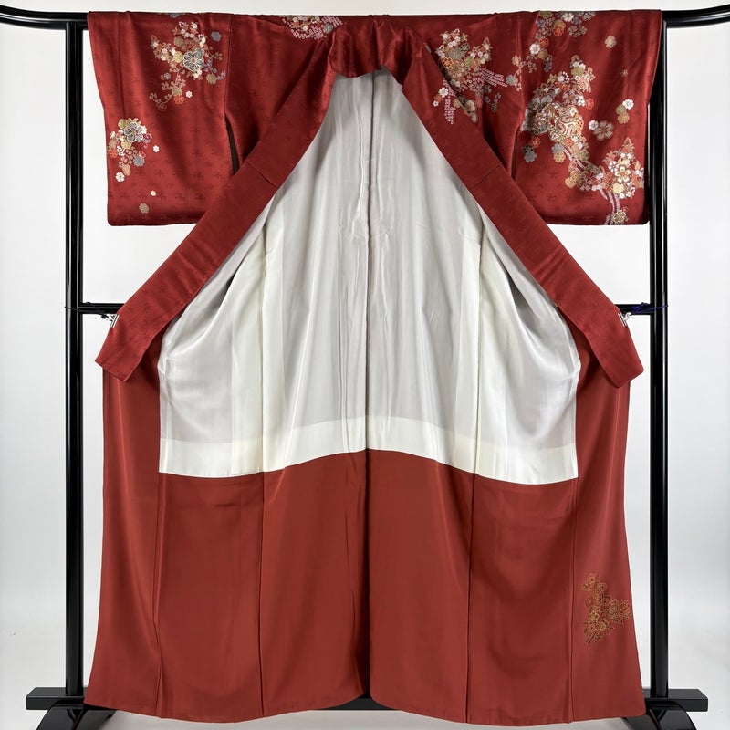 【訪問着】 赤系 えんじ色 優品 B 約160cm~約169cm 裄丈63cm-64cm (M)size 袖丈48cm 4000-7980 二万以下