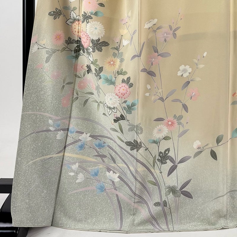 【着物ランク】名品 【素材】正絹 【身丈】約169cm 【裄丈】約68.5cm 【袖丈】約55cm 【袖幅】約36cm 【前幅】約26cm 【後幅】約31cm 【サイズ】L 【着物仕立て】袷 【着用時期】10~5月 【状態ランク】ランクB 【着物着用シーン】披露宴、パーティー、お見合い、式典、茶会