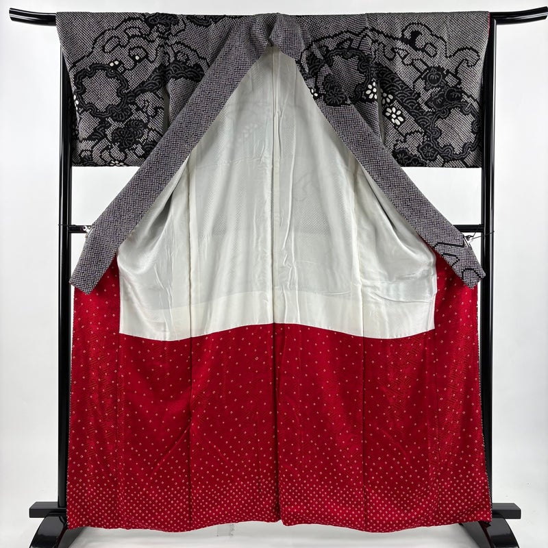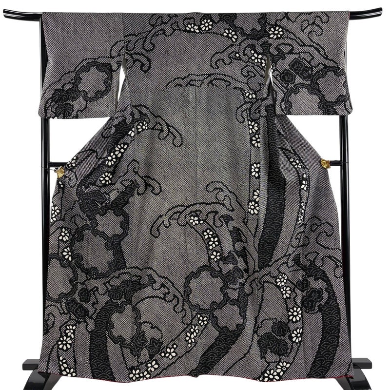 【訪問着】 灰色系 黒灰 名品 B 約160cm~約169cm 裄丈67cm-68cm (M)size 袖丈49cm 9990-29990 二万以下