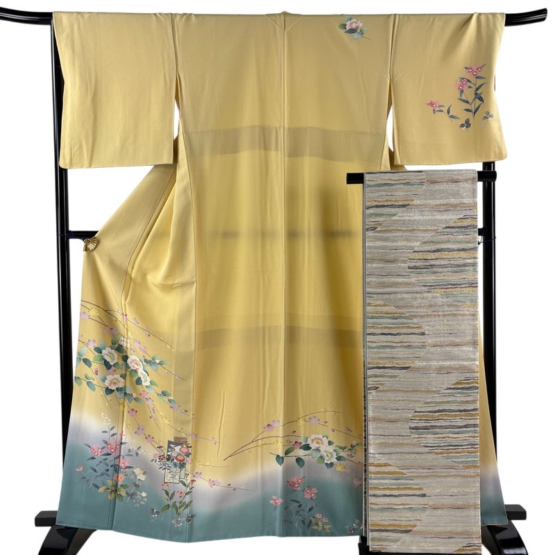 【着物ランク】秀品 【素材】正絹 【身丈】約164cm 【裄丈】約68.5cm 【袖丈】約48.5cm 【袖幅】約35.5cm 【前幅】約24.5cm 【後幅】約30cm 【サイズ】L 【着物仕立て】袷 【着用時期】10~5月 【帯丈2】約426cm 【帯幅2】約31cm 【状態ランク】ランクA 【着物着用シーン】披露宴、パーティー、お見合い、式典、茶会
