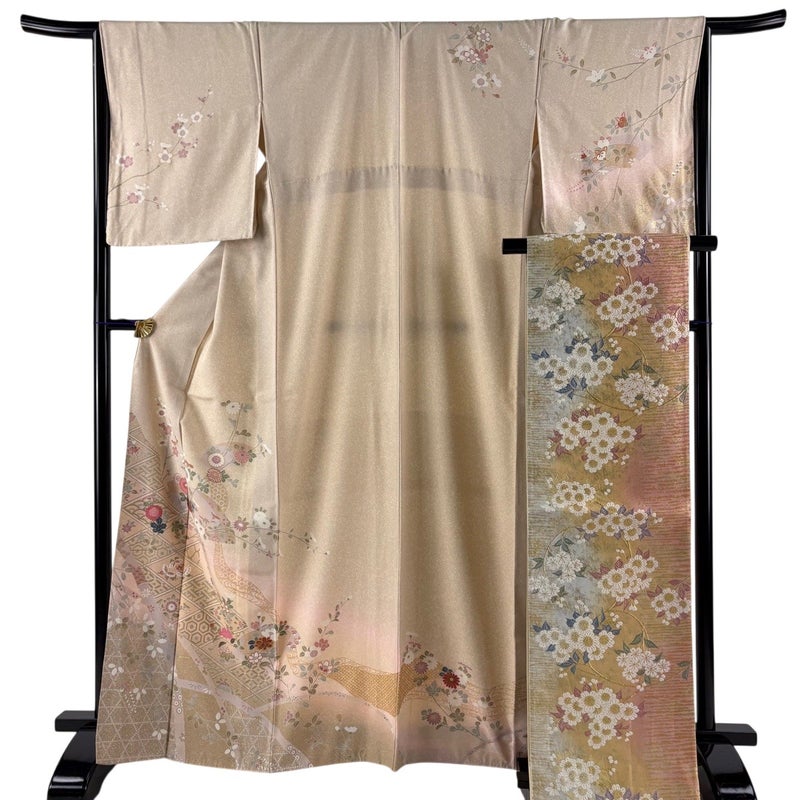 【訪問着】 白系 ベージュ 秀品 B 約160cm~約169cm 裄丈66cm (M)size 袖丈50cm-60cm 9990-29990 五万以下