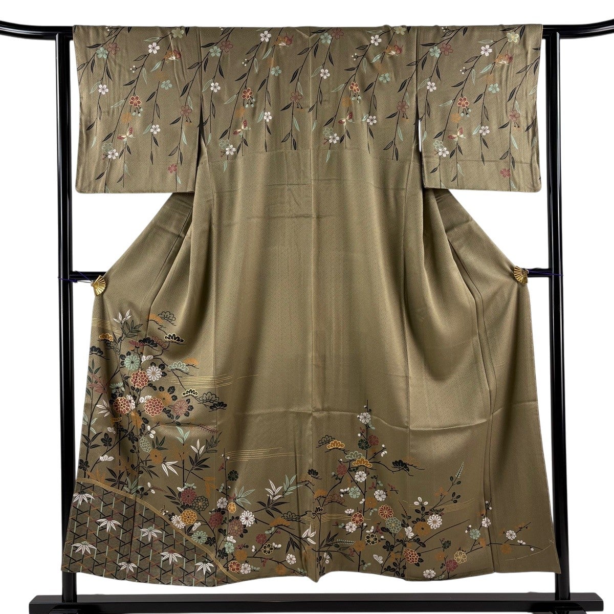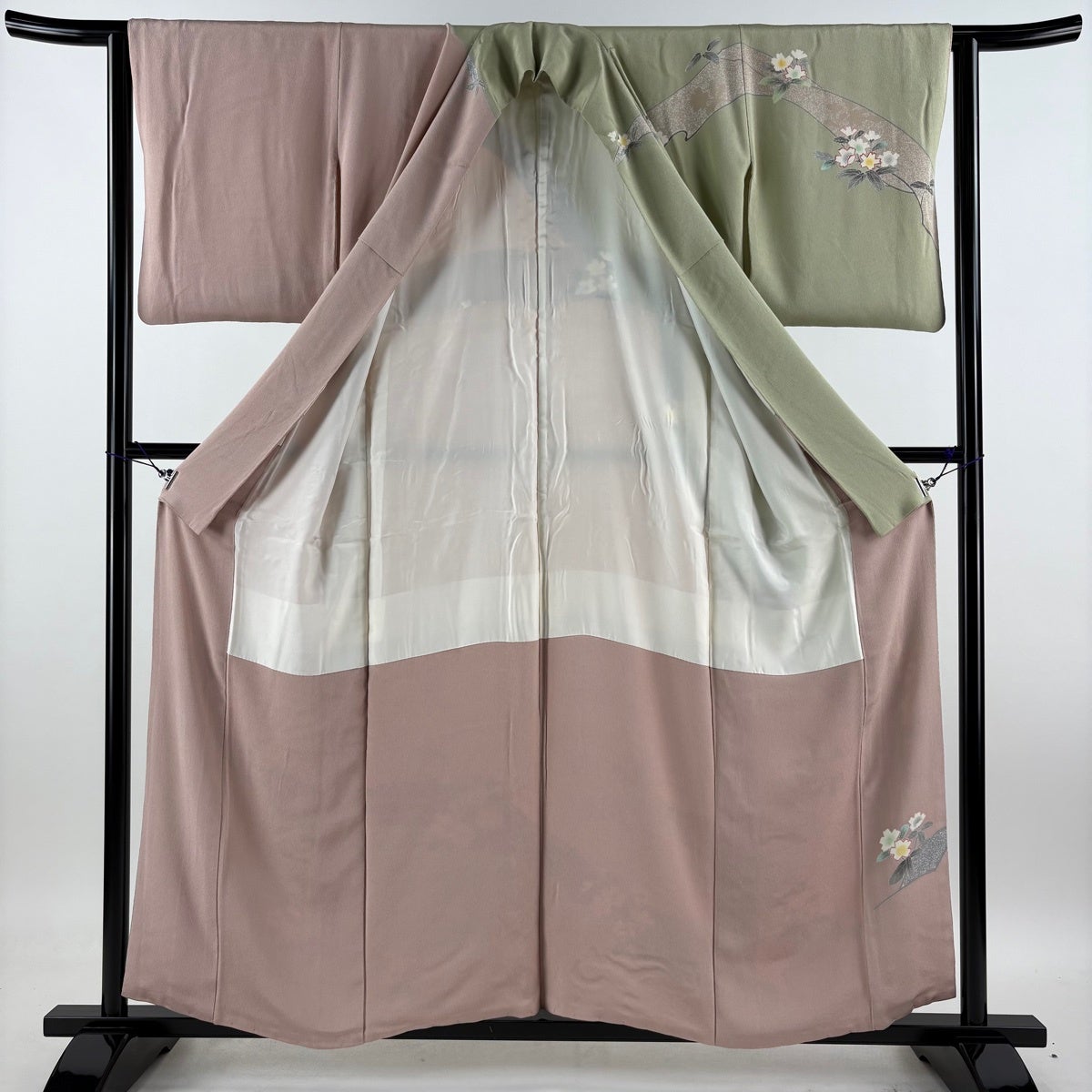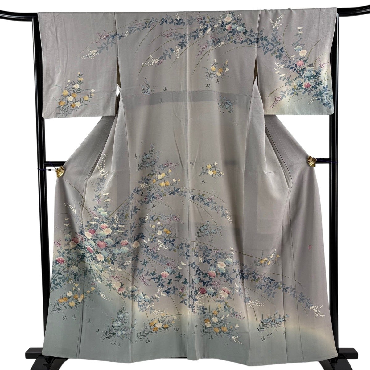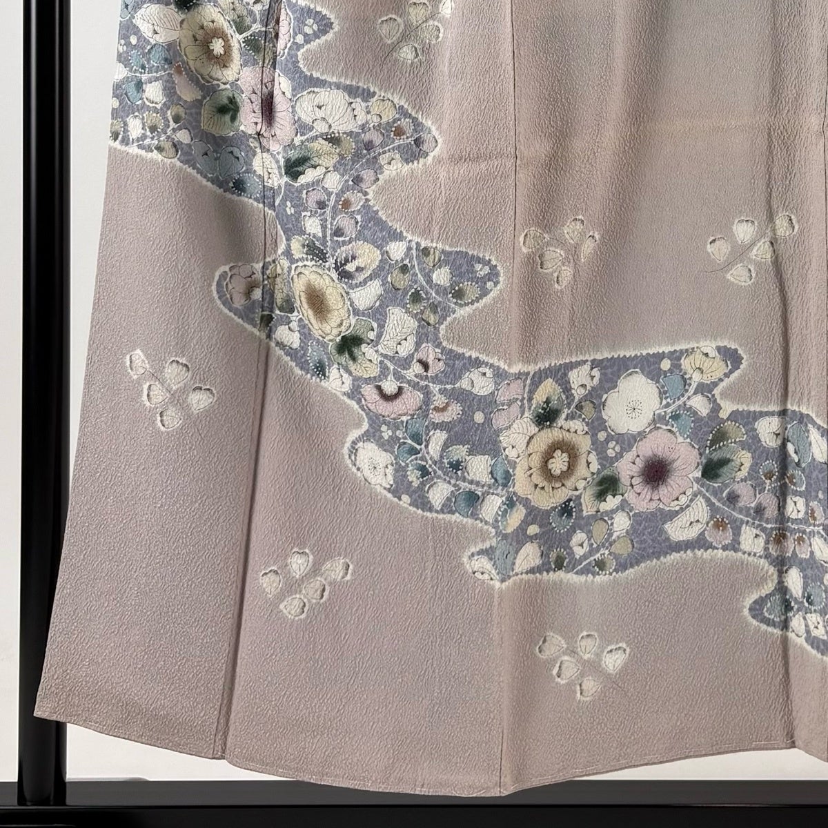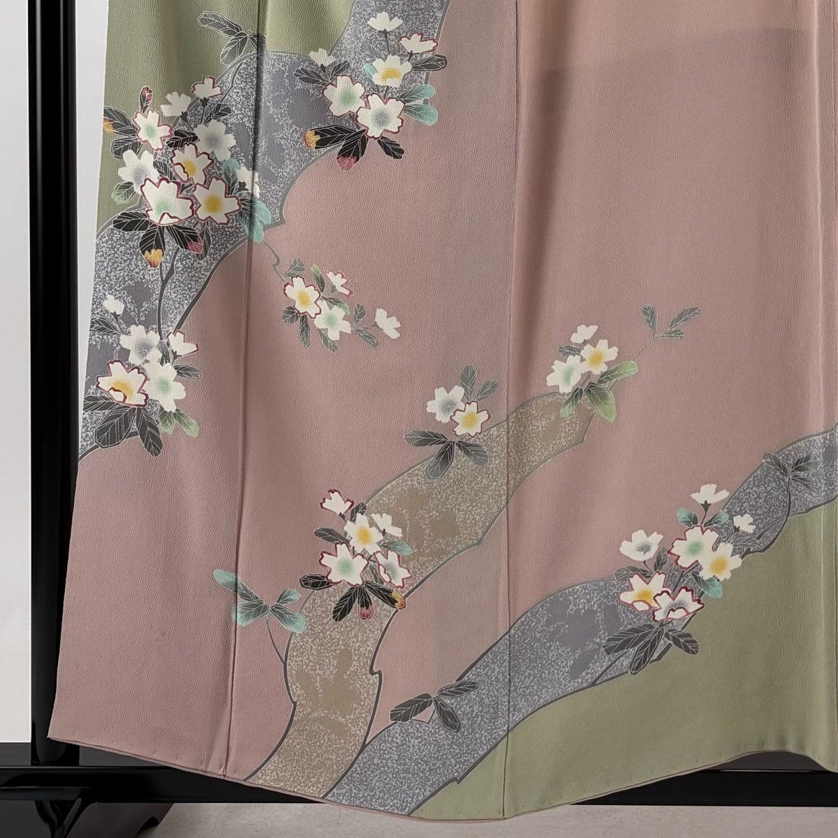 訪問着は未婚、既婚問わず着ることができる全体的に絵羽模様の社交着で色留袖の次にフォーマルな準礼装の着物です。 明治時代に公式な訪問用の着物として、訪問服と名付けられたのが訪問着と呼ばれる由来とされ、元々は三つ紋を付けて仕立てていたのですが、現在では一つ紋か無紋で仕立てられる事が多くなりました。 着用シーンも披露宴、お見合いの席、パーティーや茶会等と多岐に渡る着物です。