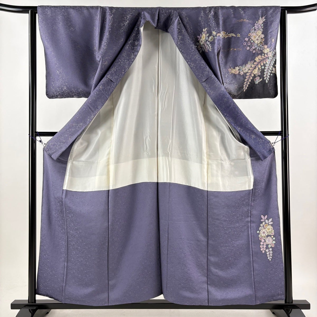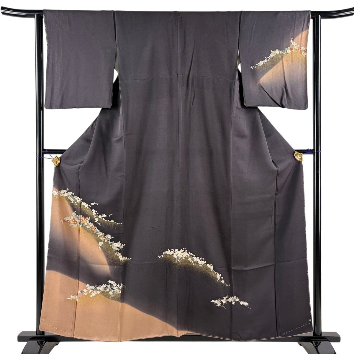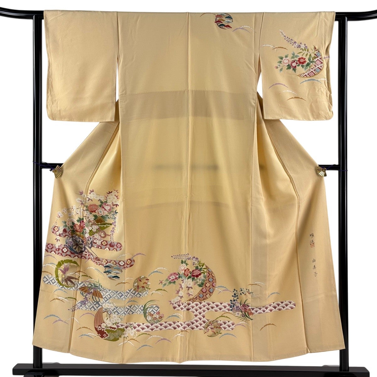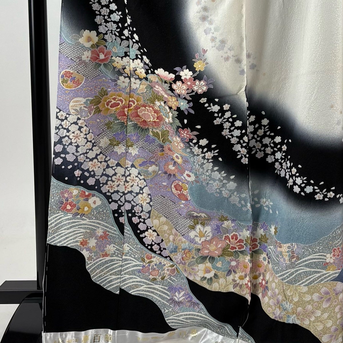 訪問着は未婚、既婚問わず着ることができる全体的に絵羽模様の社交着で色留袖の次にフォーマルな準礼装の着物です。 明治時代に公式な訪問用の着物として、訪問服と名付けられたのが訪問着と呼ばれる由来とされ、元々は三つ紋を付けて仕立てていたのですが、現在では一つ紋か無紋で仕立てられる事が多くなりました。 着用シーンも披露宴、お見合いの席、パーティーや茶会等と多岐に渡る着物です。