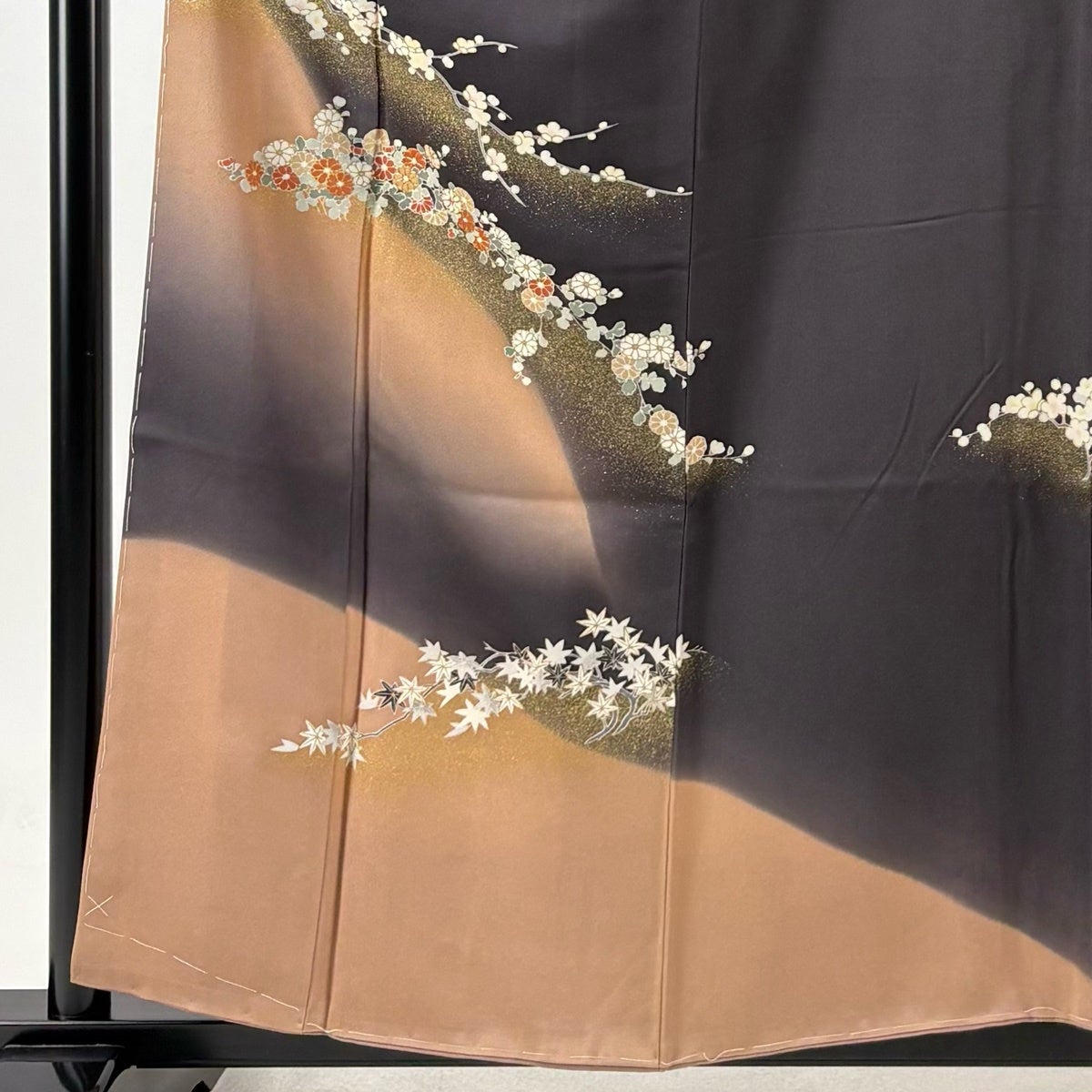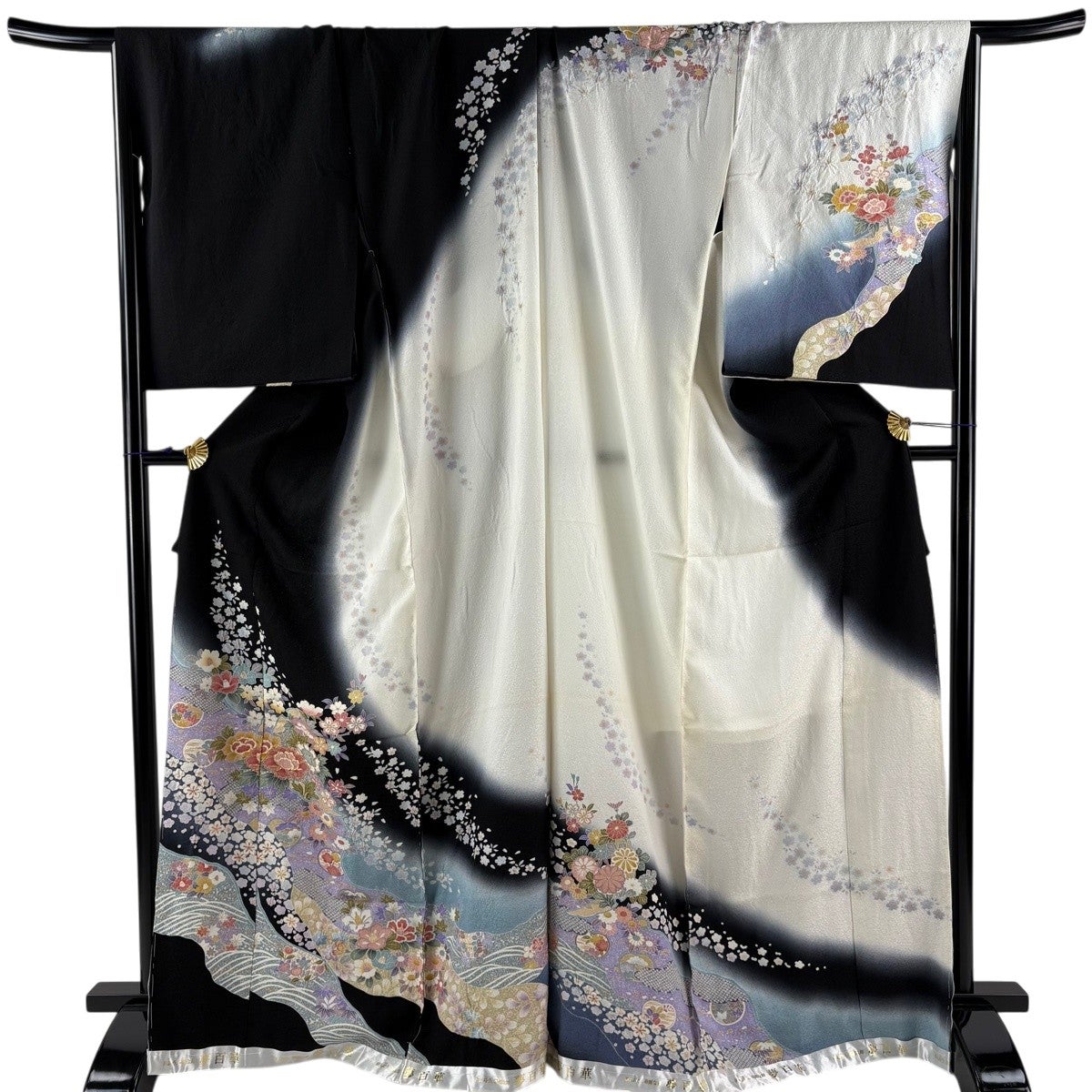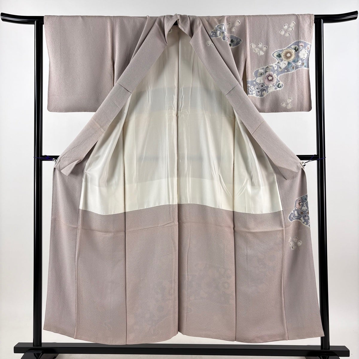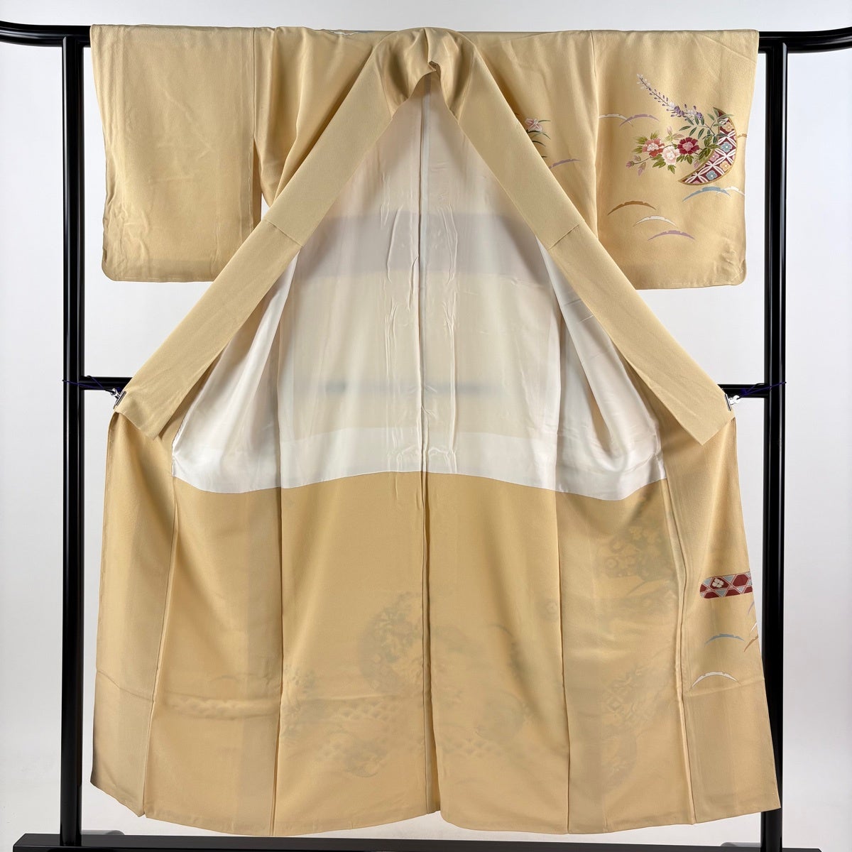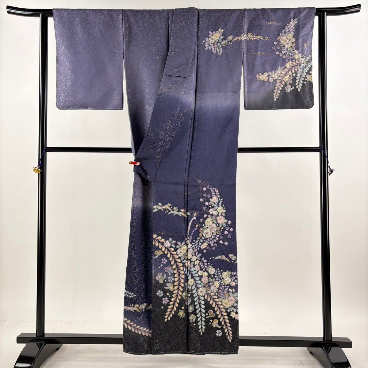 訪問着は未婚、既婚問わず着ることができる全体的に絵羽模様の社交着で色留袖の次にフォーマルな準礼装の着物です。 明治時代に公式な訪問用の着物として、訪問服と名付けられたのが訪問着と呼ばれる由来とされ、元々は三つ紋を付けて仕立てていたのですが、現在では一つ紋か無紋で仕立てられる事が多くなりました。 着用シーンも披露宴、お見合いの席、パーティーや茶会等と多岐に渡る着物です。