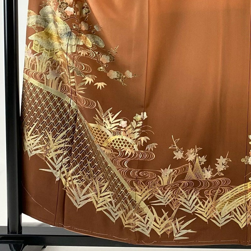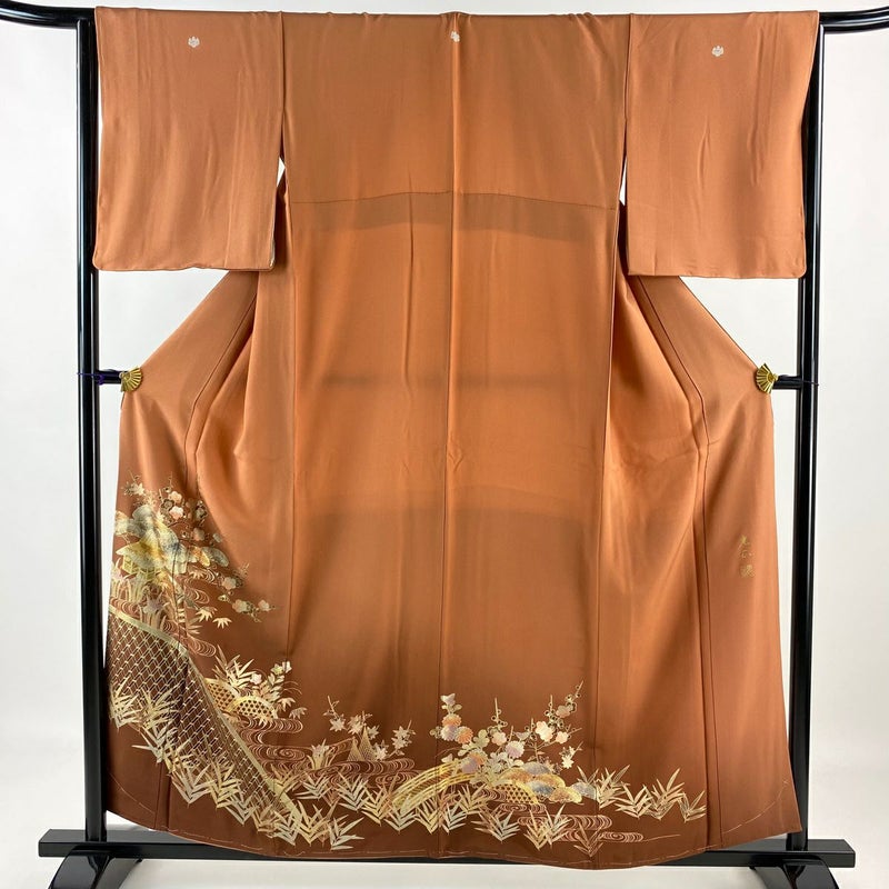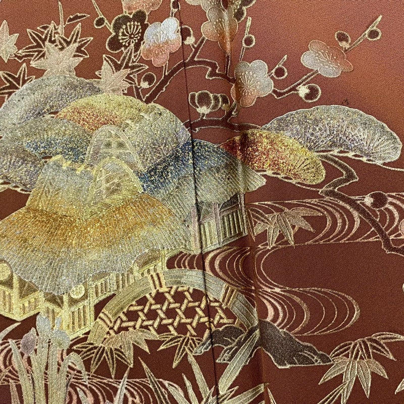 【色留袖】 赤系 赤茶 名品 B 約150cm~約159cm 裄丈65cm (M)size 袖丈49cm 9990-29990 二万以下