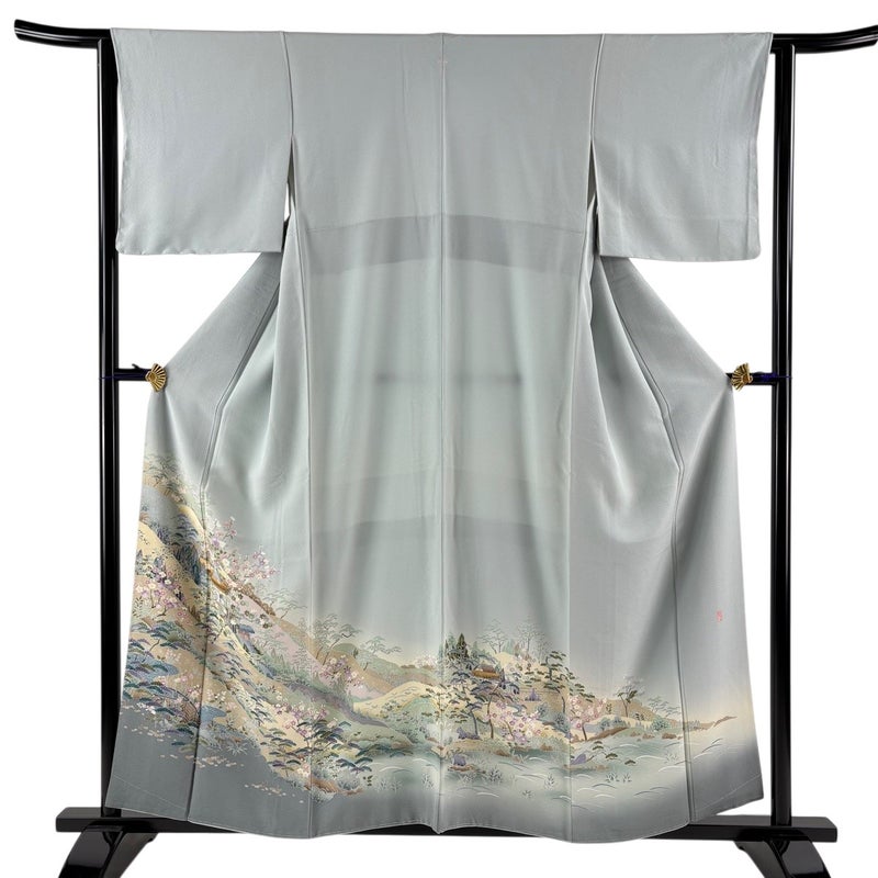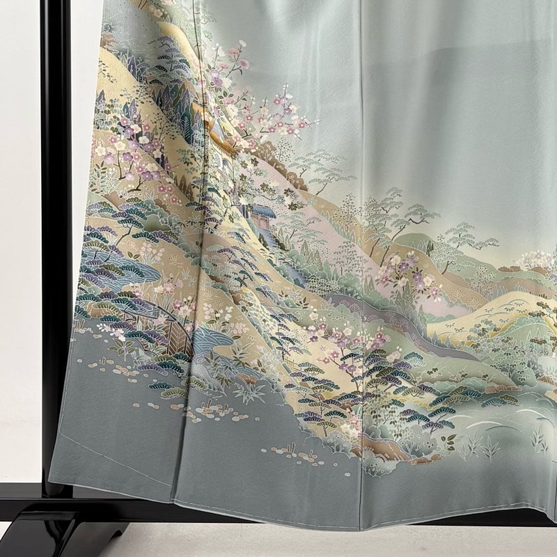 【色留袖】 灰色系 青灰色 名品 B 約150cm~約159cm 裄丈62cm以下 (S)size 袖丈46cm以下 9990-29990 二万以下