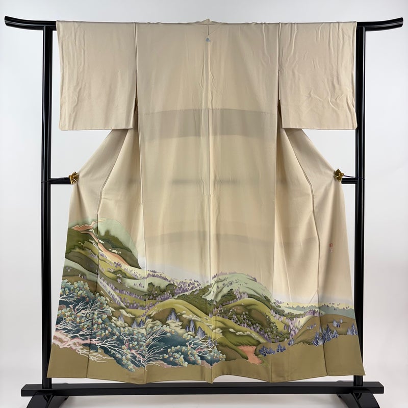 【着物ランク】名品 【素材】正絹 【身丈】約154cm 【裄丈】約61.5cm 【袖丈】約46.5cm 【袖幅】約32cm 【前幅】約25cm 【後幅】約30cm 【サイズ】S 【着物仕立て】袷 【着用時期】10~5月 【状態ランク】ランクB 【着物着用シーン】披露宴出席、式典、パーティー、格式ある茶会