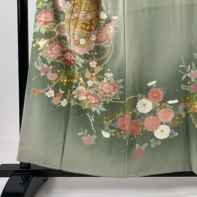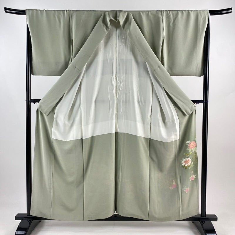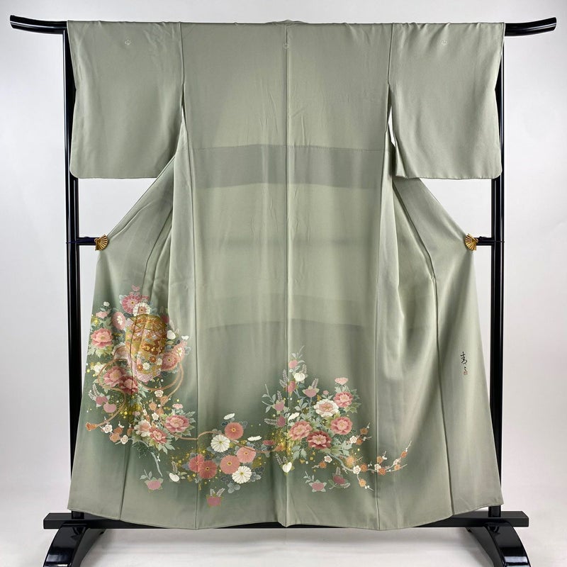 【色留袖】 灰色系 灰緑 名品 B 約150cm~約159cm 裄丈66cm (M)size 袖丈49cm 9990-29990 二万以下