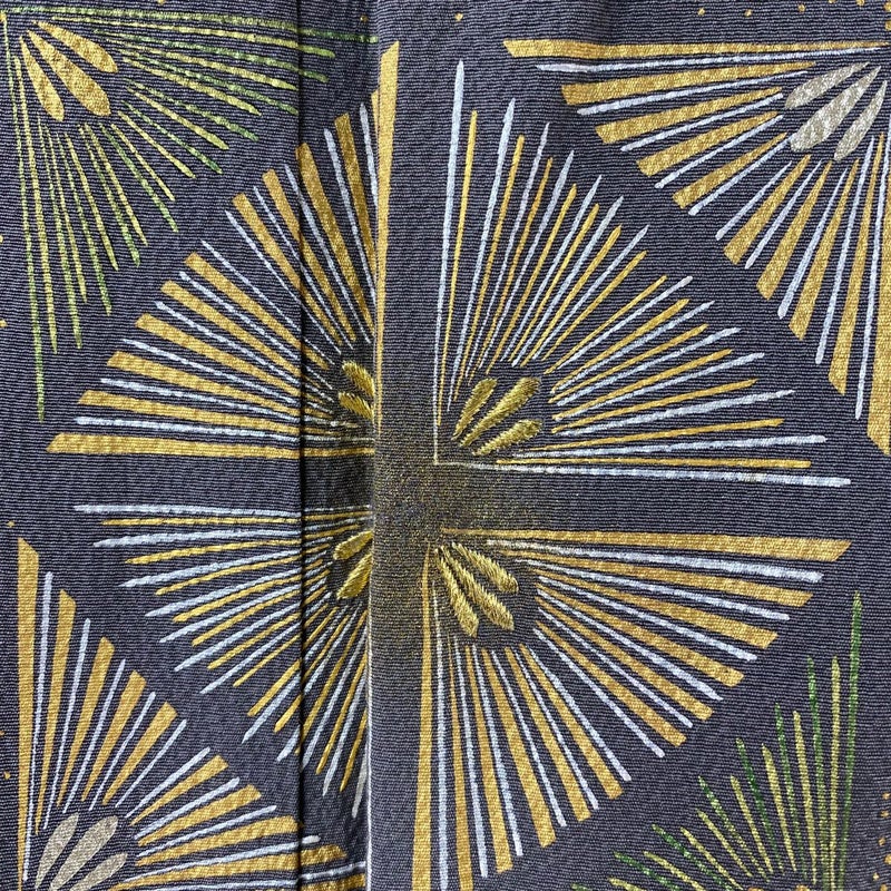刺繍分野における唯一の人間国宝である福田喜重の手掛けた作品でございます。 既婚、未婚問わず着用できる色留袖でございます。 汎用性が高いお着物となっておりますので、この機会にぜひいかがでしょうか。 身丈・裄丈はこれ以上伸ばすことができません。 三つ紋の染め抜き紋です。 表地所々に薄ヤケ、左胸と左衿にシミ、衿周りや両袖口中に薄汚れ、表地所々にシワ、表地所々に金彩の変色がございます。 八掛にヤケ、裏地所々にシワがございます。 リユース品としては良い状態で、まだまだご活用頂けると思われます。 ※なお、厳しく商品の状態確認を行っておりますが、記載の汚れ以外にも見落とし箇所がある可能性がある旨ご了承いただけますと幸いです。