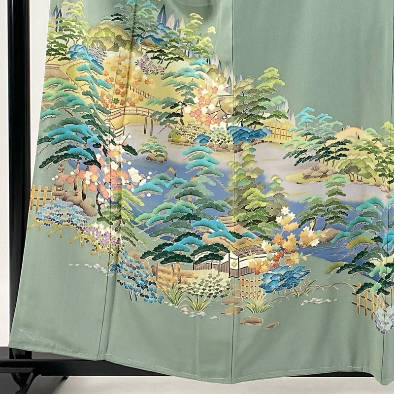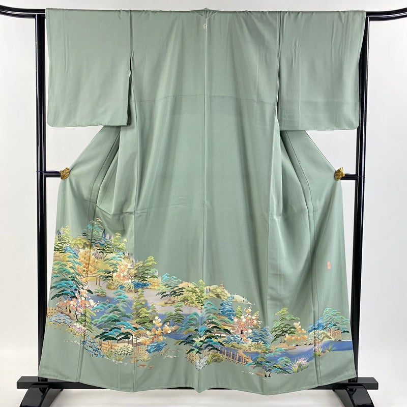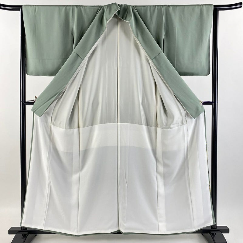 【色留袖】 緑系 薄緑 秀品 A 約150cm~約159cm 裄丈62cm以下 (S)size 袖丈48cm 7990-9980 美品 二万以下