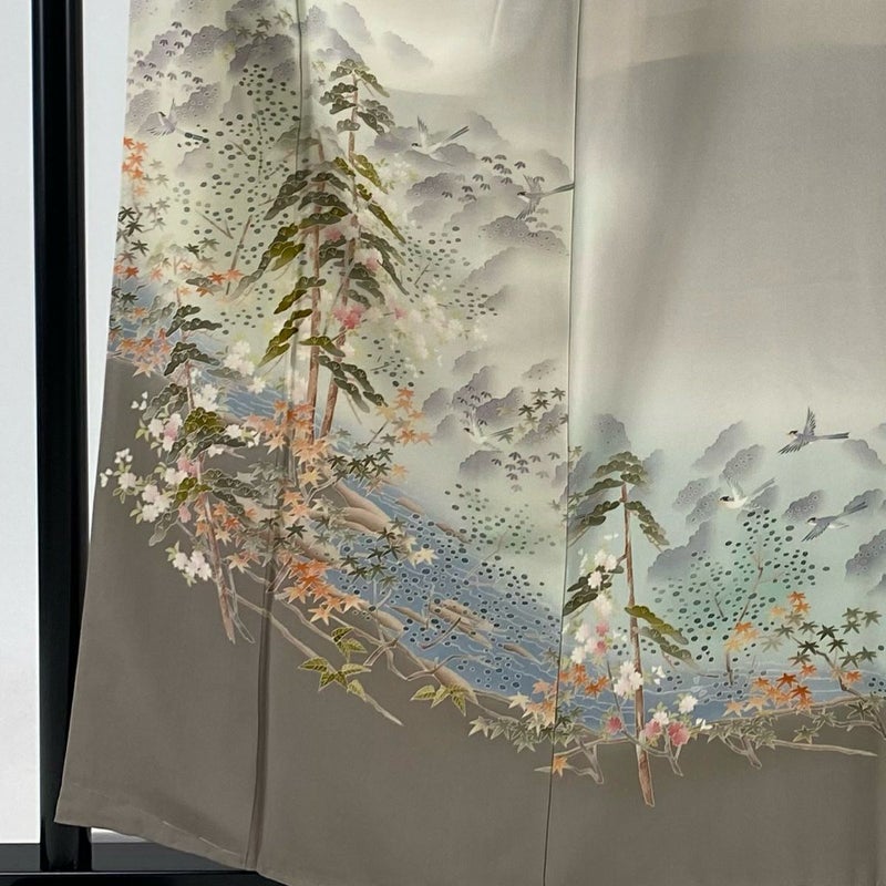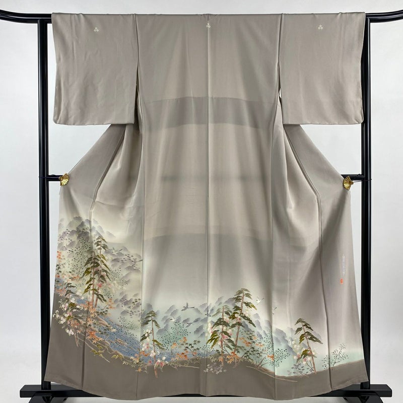 【着物ランク】秀品 【素材】正絹 【身丈】約157cm 【裄丈】約64cm 【袖丈】約47cm 【袖幅】約34cm 【前幅】約24cm 【後幅】約29cm 【サイズ】M 【着物仕立て】袷 【着用時期】10~5月 【状態ランク】ランクA 【着物着用シーン】披露宴出席、式典、パーティー、格式ある茶会