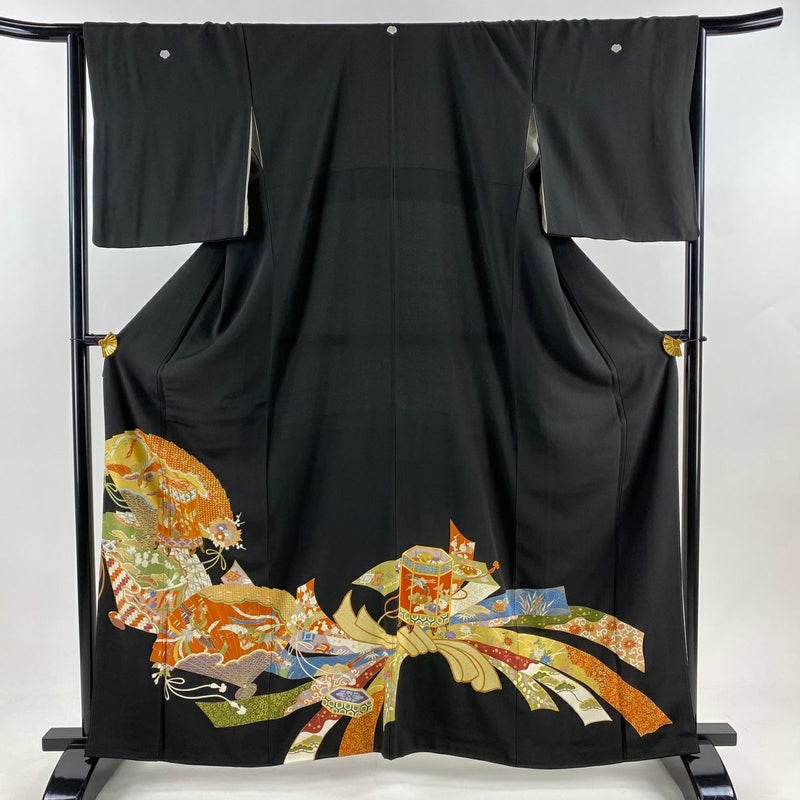 【黒留袖】 黒系 黒 逸品 B 約160cm~約169cm 裄丈66cm (M)size 袖丈48cm 30000- 五万以上