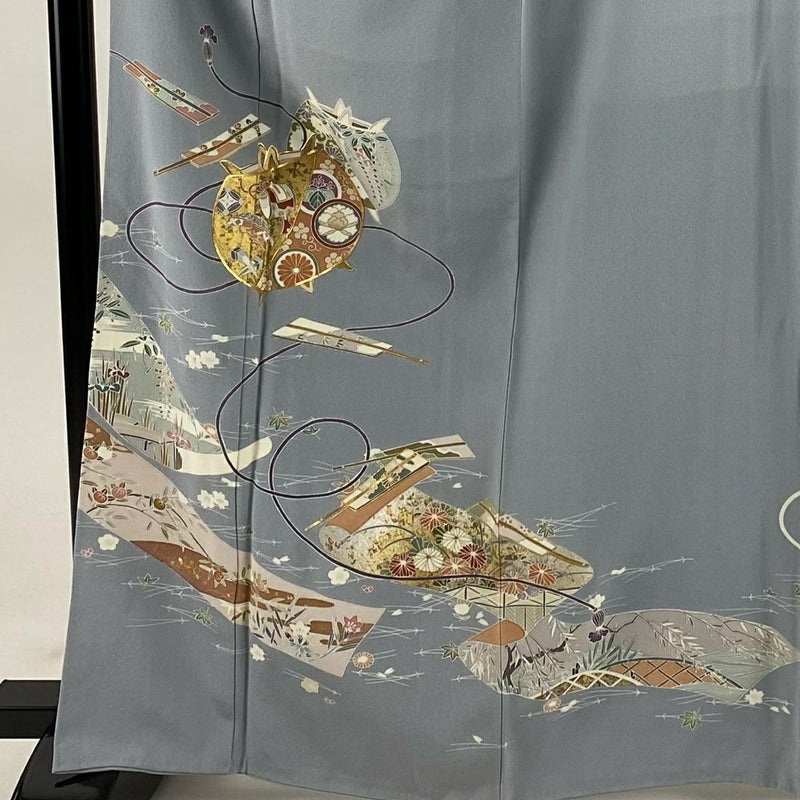 【色留袖】 灰色系 青灰色 秀品 B 約160cm~約169cm 裄丈63cm-64cm (S)size 袖丈48cm -3980 二万以下