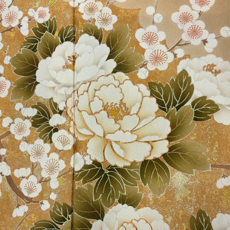 【着物ランク】秀品 【素材】正絹 【身丈】約161cm 【裄丈】約64.5cm 【袖丈】約50.5cm 【袖幅】約32.5cm 【前幅】約24.5cm 【後幅】約30.5cm 【サイズ】M 【着物仕立て】袷 【着用時期】10~5月 【状態ランク】ランクB 【着物着用シーン】披露宴出席、式典、パーティー、格式ある茶会