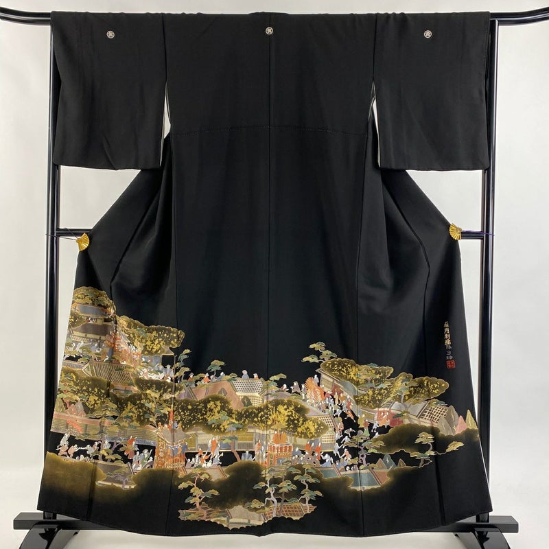 【黒留袖】 黒系 黒 秀品 B 約160cm~約169cm 裄丈66cm (M)size 袖丈48cm 4000-7980 二万以下