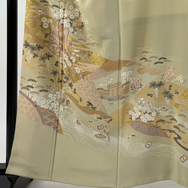【着物ランク】秀品 【素材】正絹 【身丈】約162.5cm 【裄丈】約66cm 【袖丈】約48.5cm 【袖幅】約33.5cm 【前幅】約25.5cm 【後幅】約31cm 【サイズ】M 【着物仕立て】袷 【着用時期】10~5月 【状態ランク】ランクC 【着物着用シーン】披露宴出席、式典、パーティー、格式ある茶会
