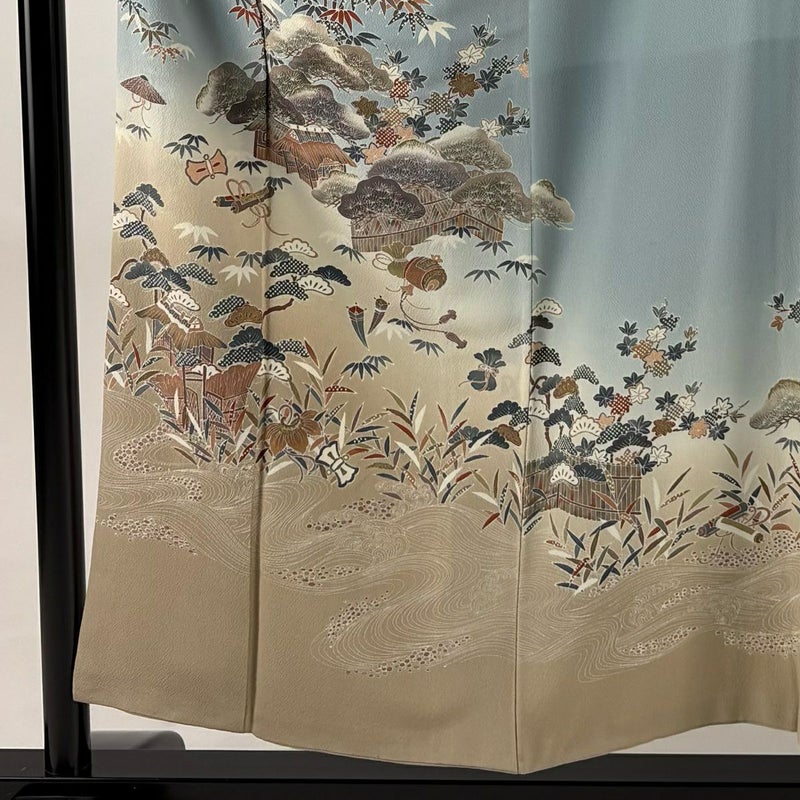 【色留袖】 青系 水色 秀品 C 約150cm~約159cm 裄丈63cm-64cm (S)size 袖丈48cm -3980 二万以下