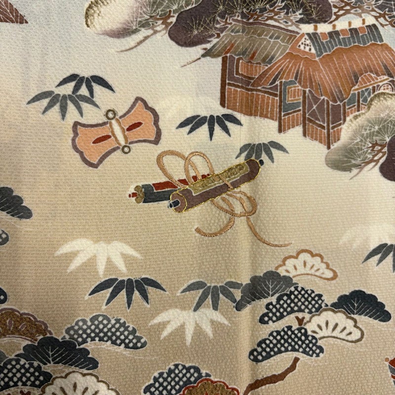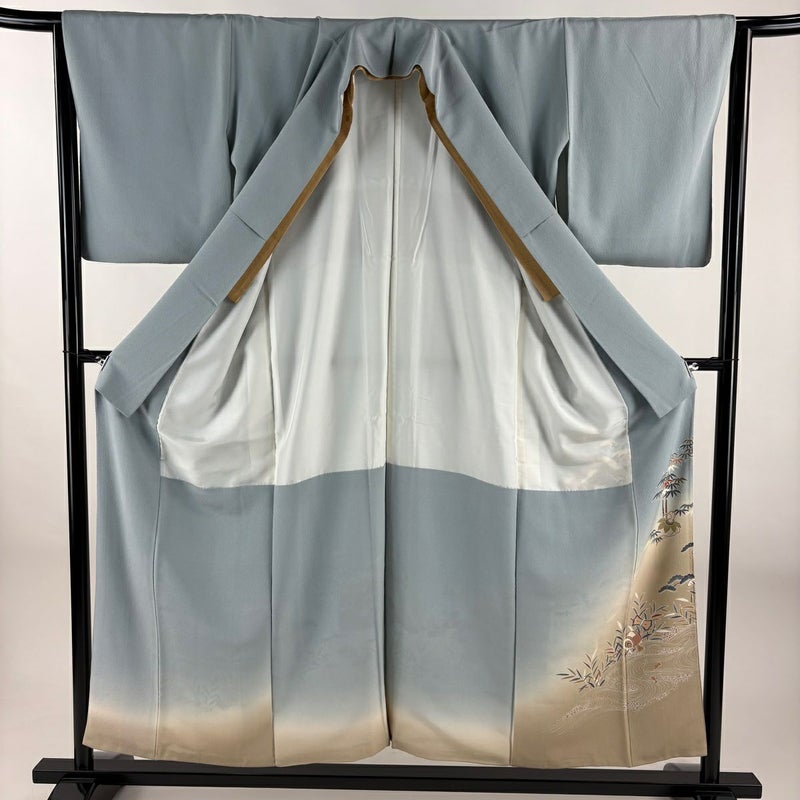 【着物ランク】秀品 【素材】正絹 【身丈】約154cm 【裄丈】約63.5cm 【袖丈】約48cm 【袖幅】約32cm 【前幅】約25cm 【後幅】約30.5cm 【サイズ】S 【着物仕立て】袷 【着用時期】10~5月 【状態ランク】ランクC 【着物着用シーン】披露宴出席、式典、パーティー、格式ある茶会