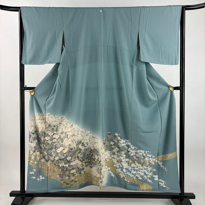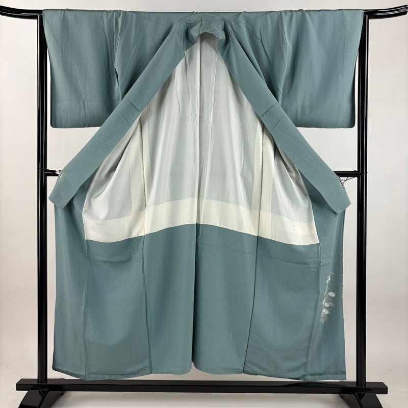 【色留袖】 灰色系 灰緑 秀品 B 約150cm~約159cm 裄丈63cm-64cm (M)size 袖丈48cm 4000-7980 二万以下