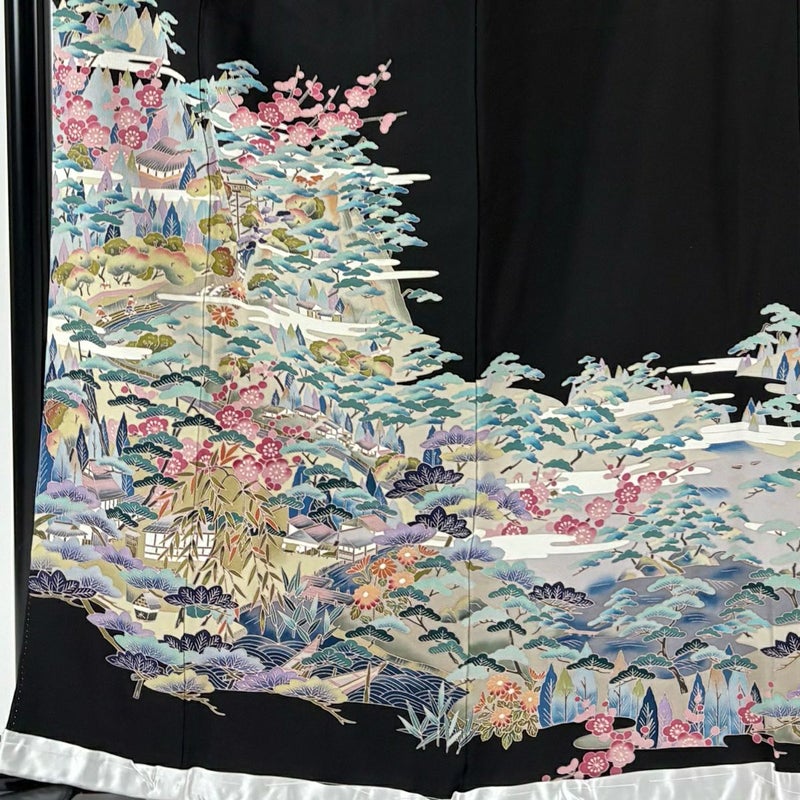【黒留袖】 黒系 黒 秀品 B 約160cm~約169cm 裄丈66cm (M)size 袖丈48cm 4000-7980 二万以下