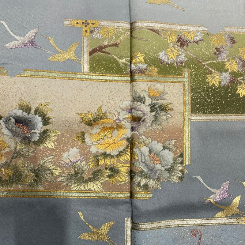 【色留袖】 灰色系 青灰色 名品 B 約160cm~約169cm 裄丈67cm-68cm (L)size 袖丈48cm 9990-29990 二万以下