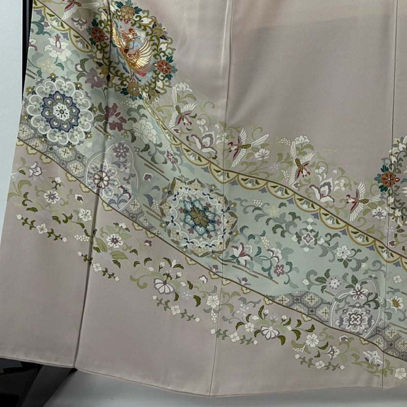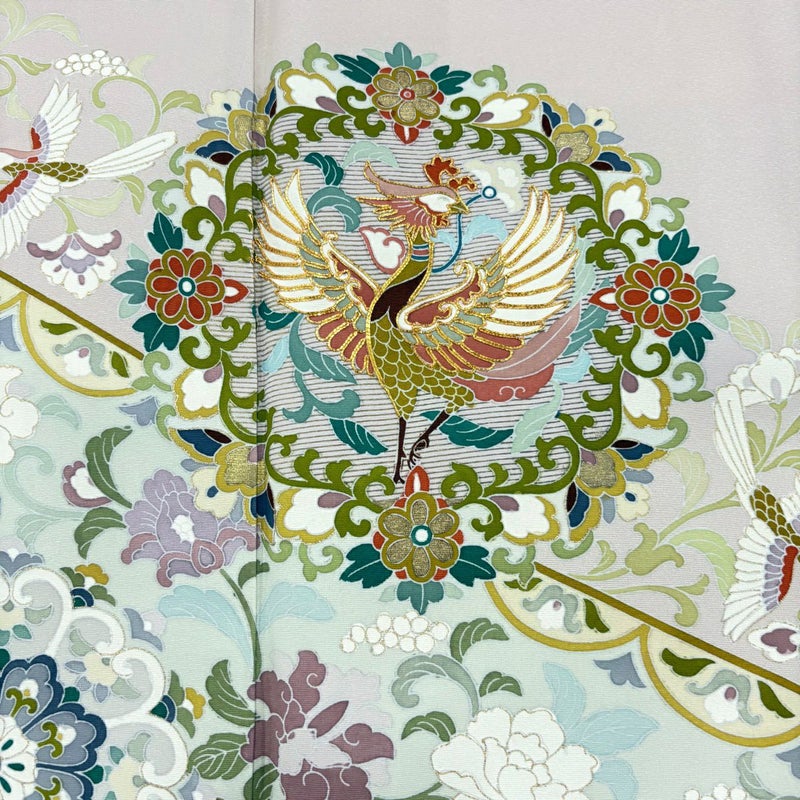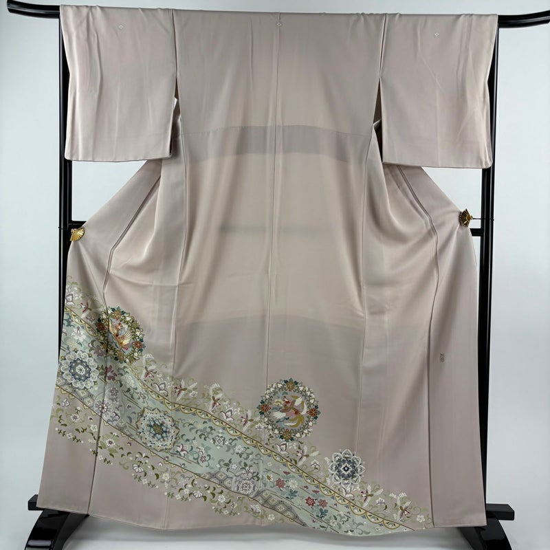 【着物ランク】秀品 【素材】正絹 【身丈】約164cm 【裄丈】約66cm 【袖丈】約48.5cm 【袖幅】約33.5cm 【前幅】約24.5cm 【後幅】約30cm 【サイズ】M 【着物仕立て】袷 【着用時期】10~5月 【状態ランク】ランクB 【着物着用シーン】披露宴出席、式典、パーティー、格式ある茶会