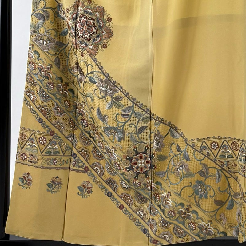 【色留袖】 黄色系 薄黄 秀品 B 約150cm~約159cm 裄丈63cm-64cm (M)size 袖丈50cm-60cm 4000-7980 二万以下