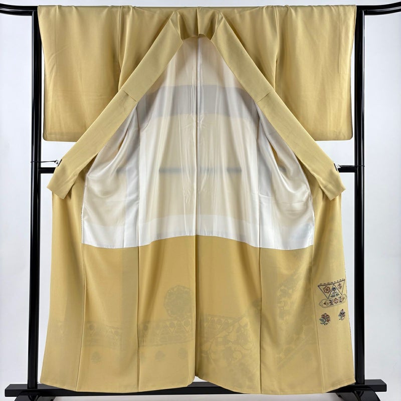 【着物ランク】秀品 【素材】正絹 【身丈】約157.5cm 【裄丈】約64cm 【袖丈】約55.5cm 【袖幅】約33.5cm 【前幅】約24cm 【後幅】約30cm 【サイズ】M 【着物仕立て】袷 【着用時期】10~5月 【状態ランク】ランクB 【着物着用シーン】披露宴出席、式典、パーティー、格式ある茶会