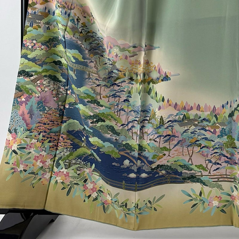 【色留袖】 緑系 薄緑 秀品 A 約160cm~約169cm 裄丈66cm (M)size 袖丈48cm 7990-9980 美品 二万以下