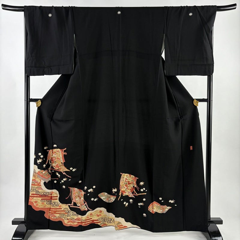 【黒留袖】 黒系 黒 優品 B 約160cm~約169cm 裄丈67cm-68cm (L)size 袖丈50cm-60cm -3980 二万以下