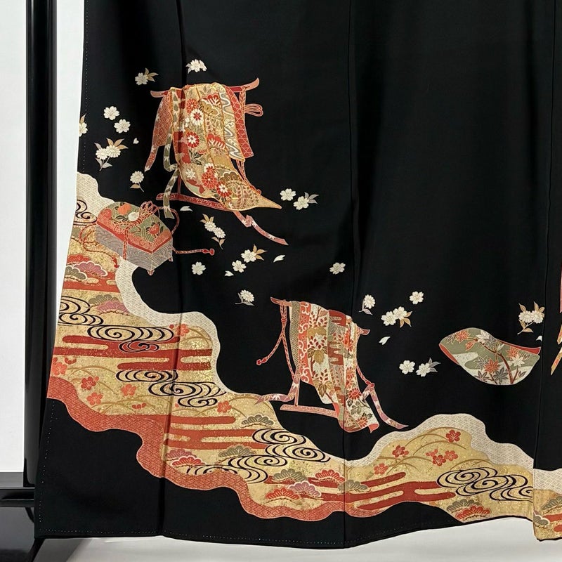 結婚式や披露宴などで親族の第一礼装として用いられる黒留袖でございます。 既婚女性が着用する着物で、最も格の高い礼装でございます。 ※身丈・裄丈の縫込みの長さは測っておりません。 表地所々にシワがございます。 リユース品としては良い状態で、まだまだご活用頂けると思われます。 ※なお、厳しく商品の状態確認を行っておりますが、記載の汚れ以外にも見落とし箇所がある可能性がある旨ご了承いただけますと幸いです。 沢山の商品の中からご覧いただき誠にありがとうございます。