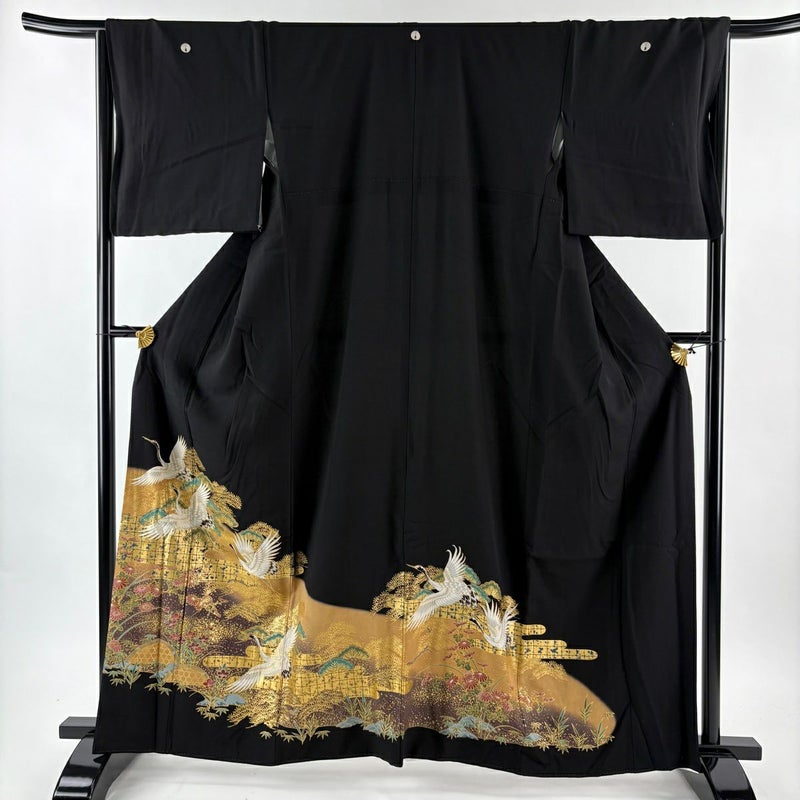 【黒留袖】 黒系 黒 優品 B 約160cm~約169cm 裄丈66cm (M)size 袖丈49cm -3980 二万以下