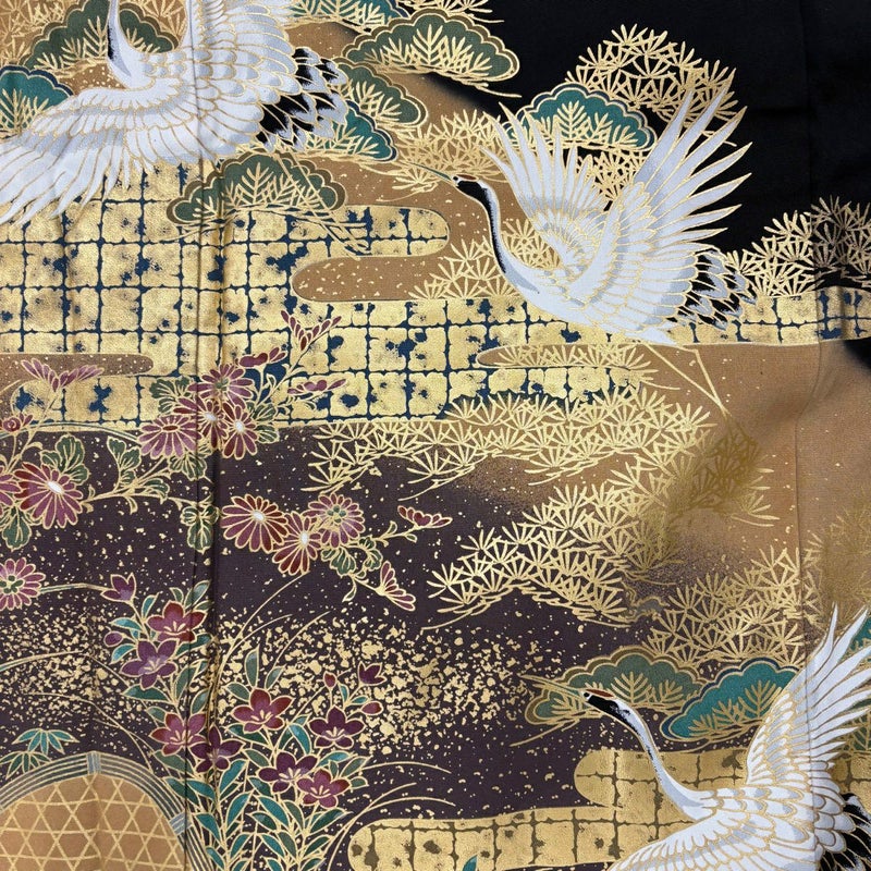 結婚式や披露宴などで親族の第一礼装として用いられる黒留袖でございます。 既婚女性が着用する着物で、最も格の高い礼装でございます。 ※身丈・裄丈の縫込みの長さは測っておりません。 表地所々と左前袖にシミ、衿周りや両袖口中に汚れ、表地所々にシワがございます。 比翼の衿と比翼の裾にシミがございます。 リユース品としては良い状態で、まだまだご活用頂けると思われます。 ※なお、厳しく商品の状態確認を行っておりますが、記載の汚れ以外にも見落とし箇所がある可能性がある旨ご了承いただけますと幸いです。 沢山の商品の中からご覧いただき誠にありがとうございます。