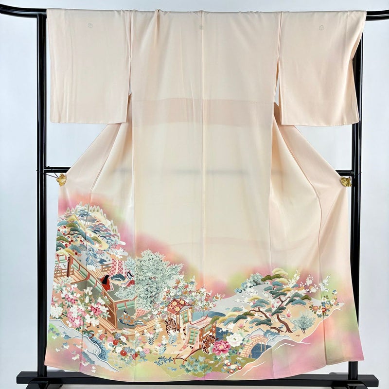 【着物ランク】優品 【素材】正絹 【身丈】約155cm 【裄丈】約68cm 【袖丈】約47.5cm 【袖幅】約34.5cm 【前幅】約23.5cm 【後幅】約29.5cm 【サイズ】L 【着物仕立て】袷 【着用時期】10~5月 【状態ランク】ランクB 【着物着用シーン】披露宴出席、式典、パーティー、格式ある茶会