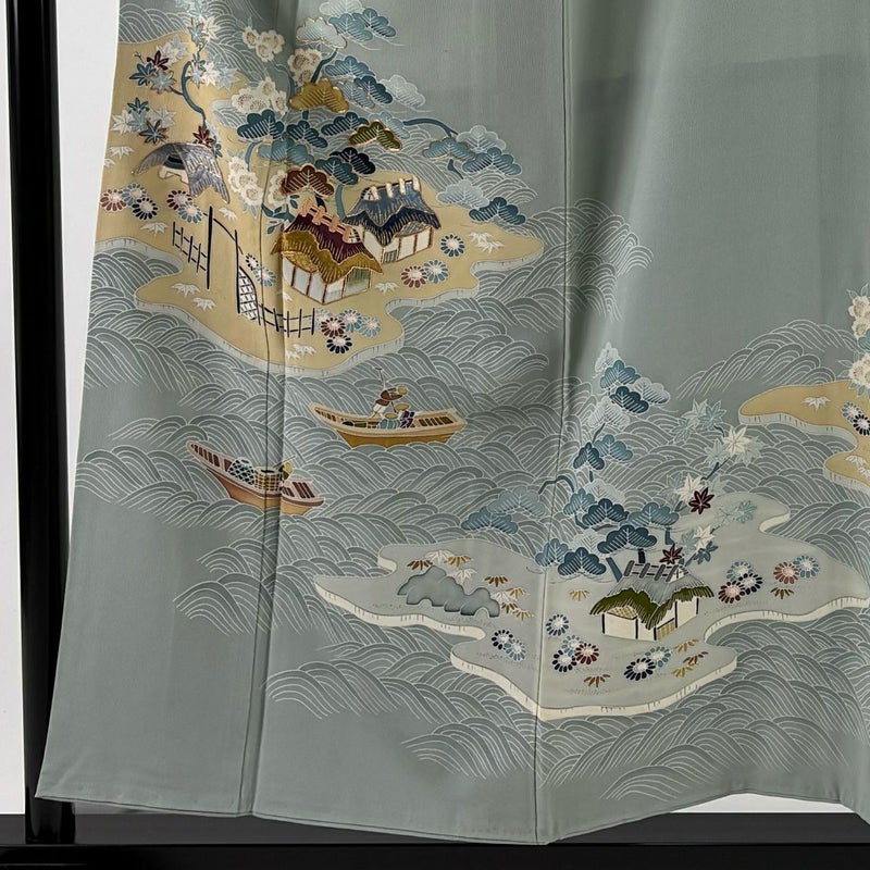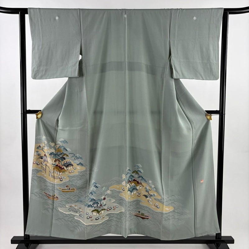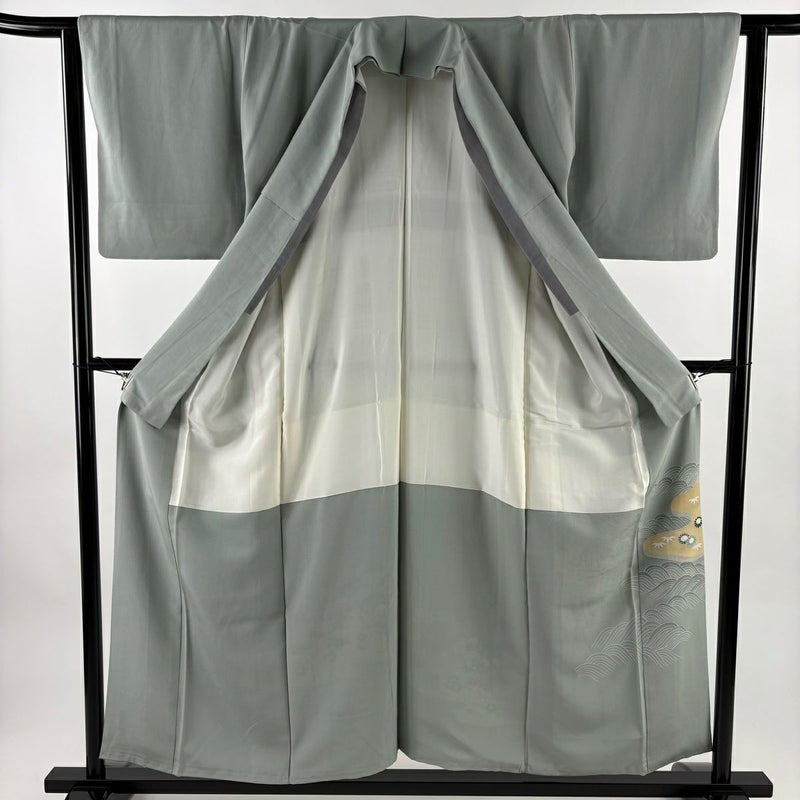 【色留袖】 灰色系 灰緑 秀品 B 約150cm~約159cm 裄丈62cm以下 (S)size 袖丈47cm 4000-7980 二万以下