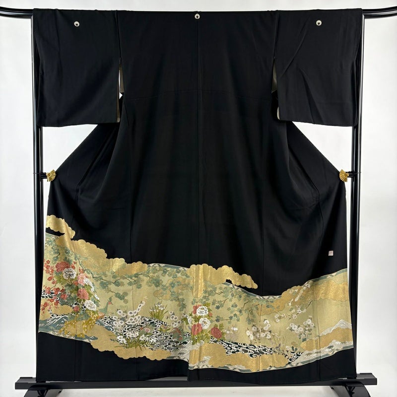 【黒留袖】 黒系 黒 名品 B 約150cm~約159cm 裄丈66cm (M)size 袖丈49cm 9990-29990 二万以下