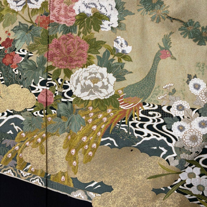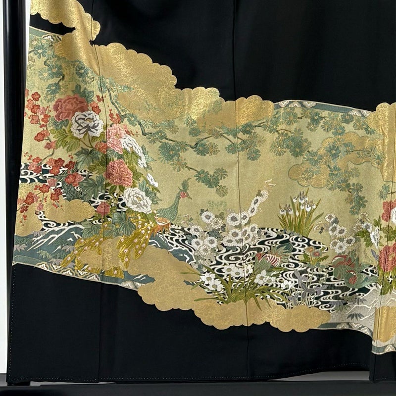 結婚式や披露宴などで親族の第一礼装として用いられる黒留袖でございます。 既婚女性が着用する着物で、最も格の高い礼装でございます。 ※身丈・裄丈の縫込みの長さは測っておりません。 衿周りや両袖口中に薄汚れ、表地所々にシワがございます。 比翼と比翼の衿にシミがございます。 リユース品としては良い状態で、まだまだご活用頂けると思われます。 ※なお、厳しく商品の状態確認を行っておりますが、記載の汚れ以外にも見落とし箇所がある可能性がある旨ご了承いただけますと幸いです。 沢山の商品の中からご覧いただき誠にありがとうございます。
