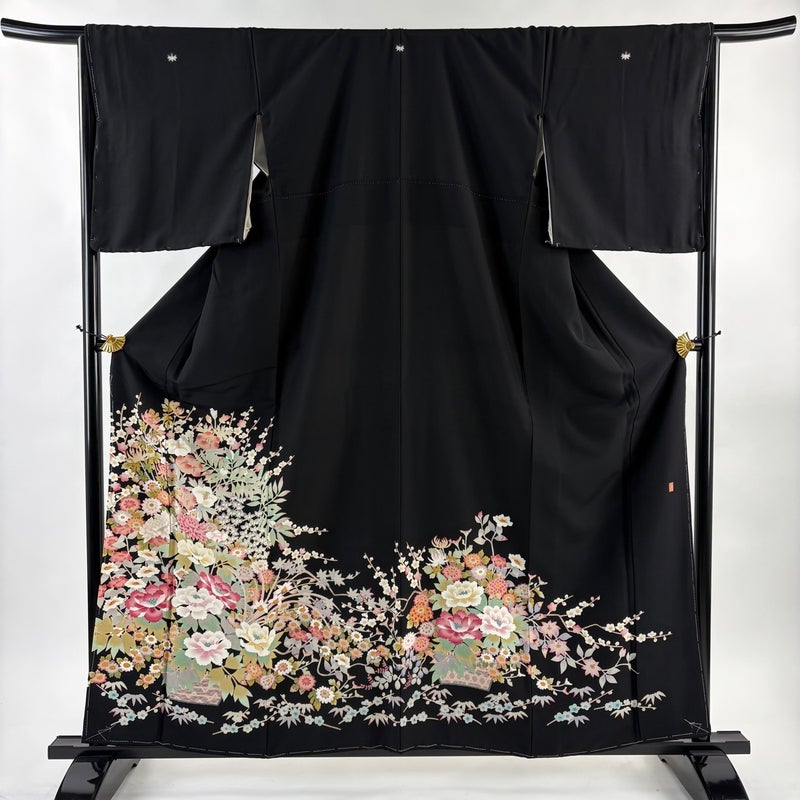 【黒留袖】 黒系 黒 名品 A 約150cm~約159cm 裄丈66cm (M)size 袖丈49cm 9990-29990 美品 二万以下