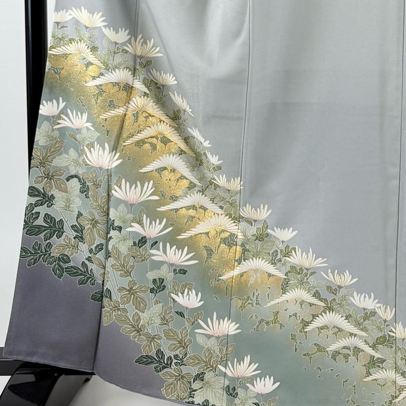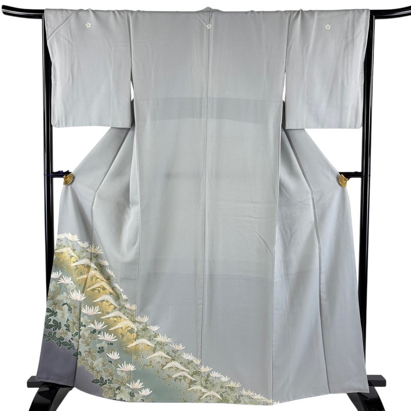 【色留袖】 灰色系 青灰色 秀品 B 約160cm~約169cm 裄丈66cm (M)size 袖丈48cm 4000-7980 二万以下