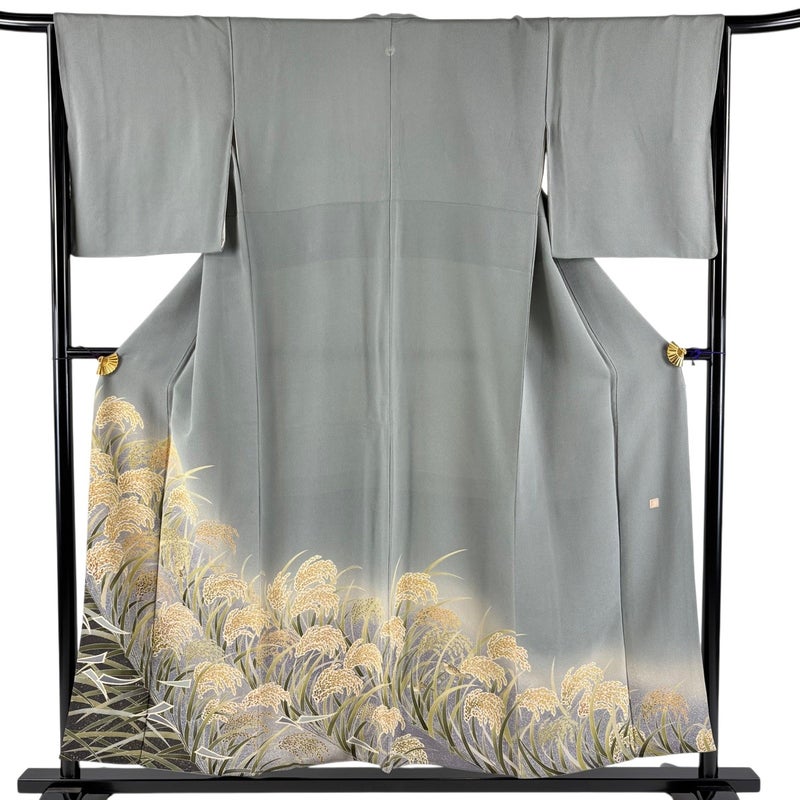 【色留袖】 灰色系 灰緑 秀品 B 約150cm~約159cm 裄丈65cm (M)size 袖丈49cm 4000-7980 二万以下