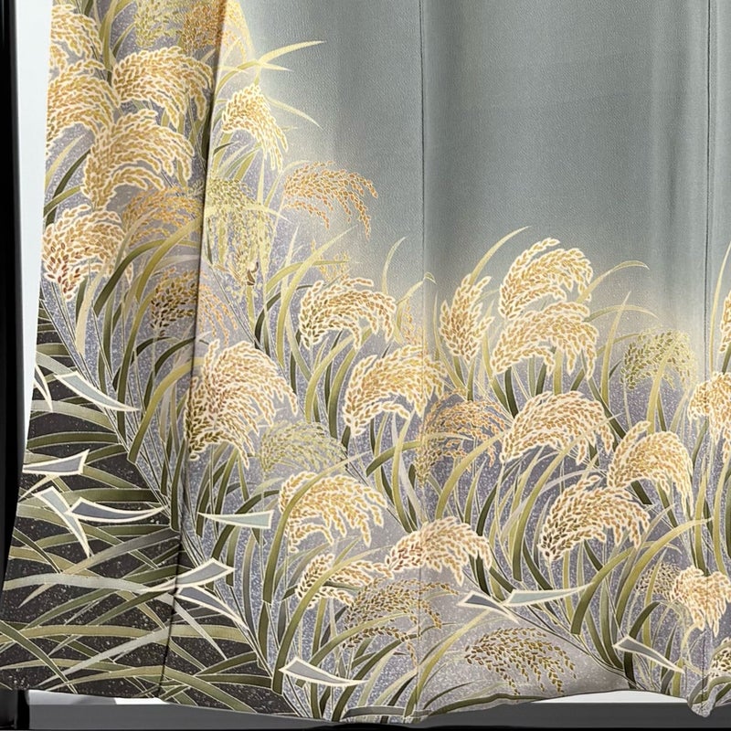【着物ランク】秀品 【素材】正絹 【身丈】約152cm 【裄丈】約65cm 【袖丈】約49cm 【袖幅】約33cm 【前幅】約23cm 【後幅】約29cm 【サイズ】M 【着物仕立て】袷 【着用時期】10~5月 【状態ランク】ランクB 【着物着用シーン】披露宴出席、式典、パーティー、格式ある茶会