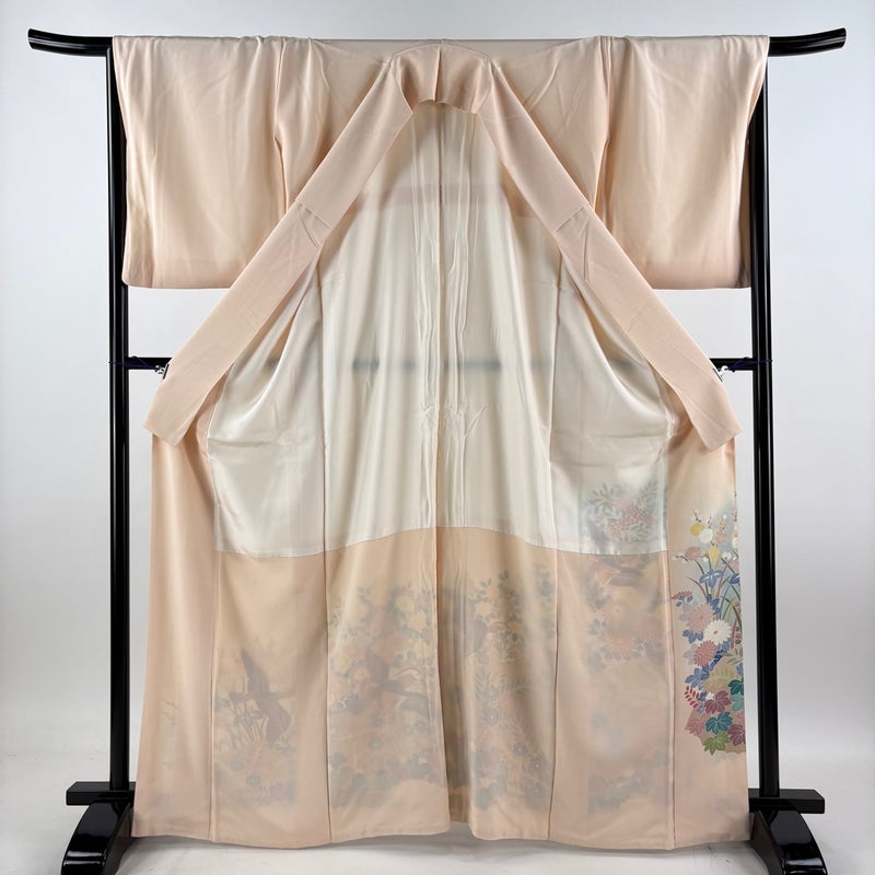 【着物ランク】秀品 【素材】正絹 【身丈】約166cm 【裄丈】約67.5cm 【袖丈】約52cm 【袖幅】約34.5cm 【前幅】約25cm 【後幅】約30.5cm 【サイズ】L 【着物仕立て】袷 【着用時期】10~5月 【状態ランク】ランクB 【着物着用シーン】披露宴出席、式典、パーティー、格式ある茶会