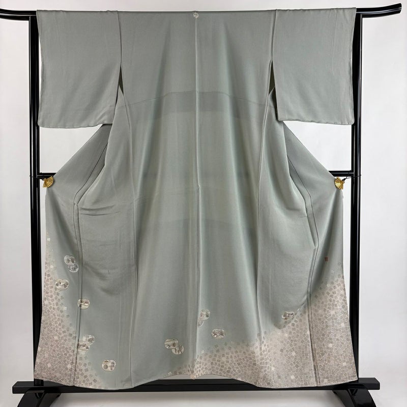 【色留袖】 灰色系 灰緑 逸品 C 約150cm~約159cm 裄丈65cm (M)size 袖丈49cm 30000- 五万以下