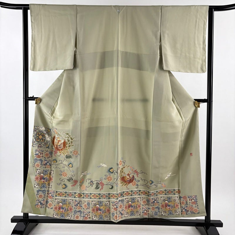 【色留袖】 灰色系 灰緑 秀品 B 約150cm~約159cm 裄丈62cm以下 (S)size 袖丈48cm 4000-7980 二万以下