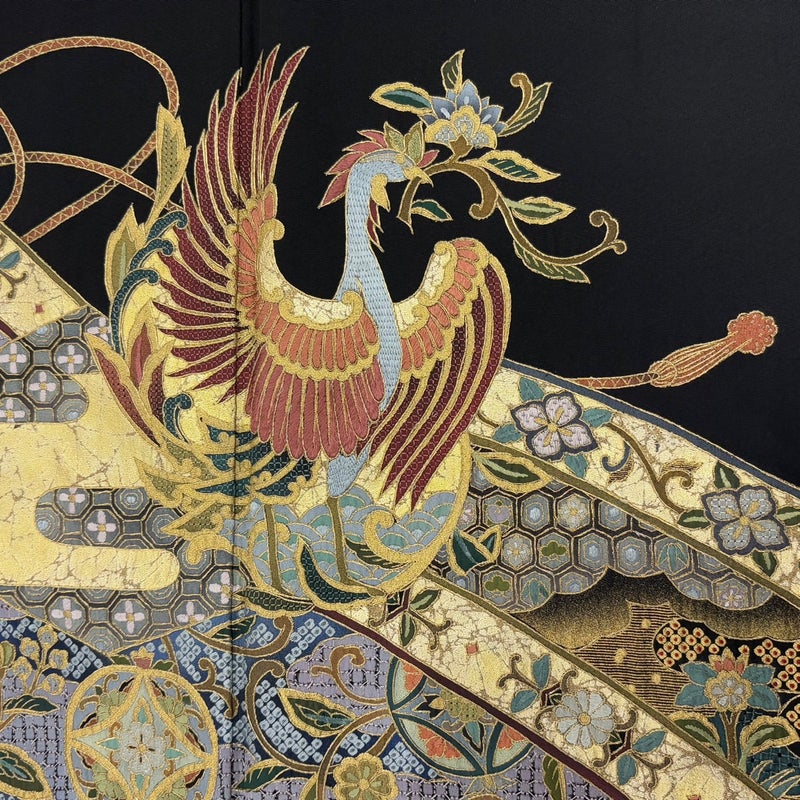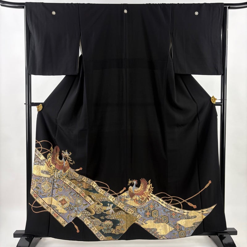【黒留袖】 黒系 黒 優品 B 約160cm~約169cm 裄丈65cm (M)size 袖丈48cm -3980 二万以下