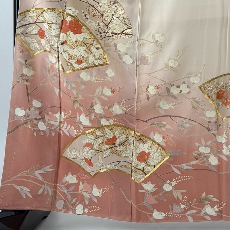 【色留袖】 赤系 薄ピンク 優品 B 約160cm~約169cm 裄丈66cm (M)size 袖丈49cm -3980 二万以下